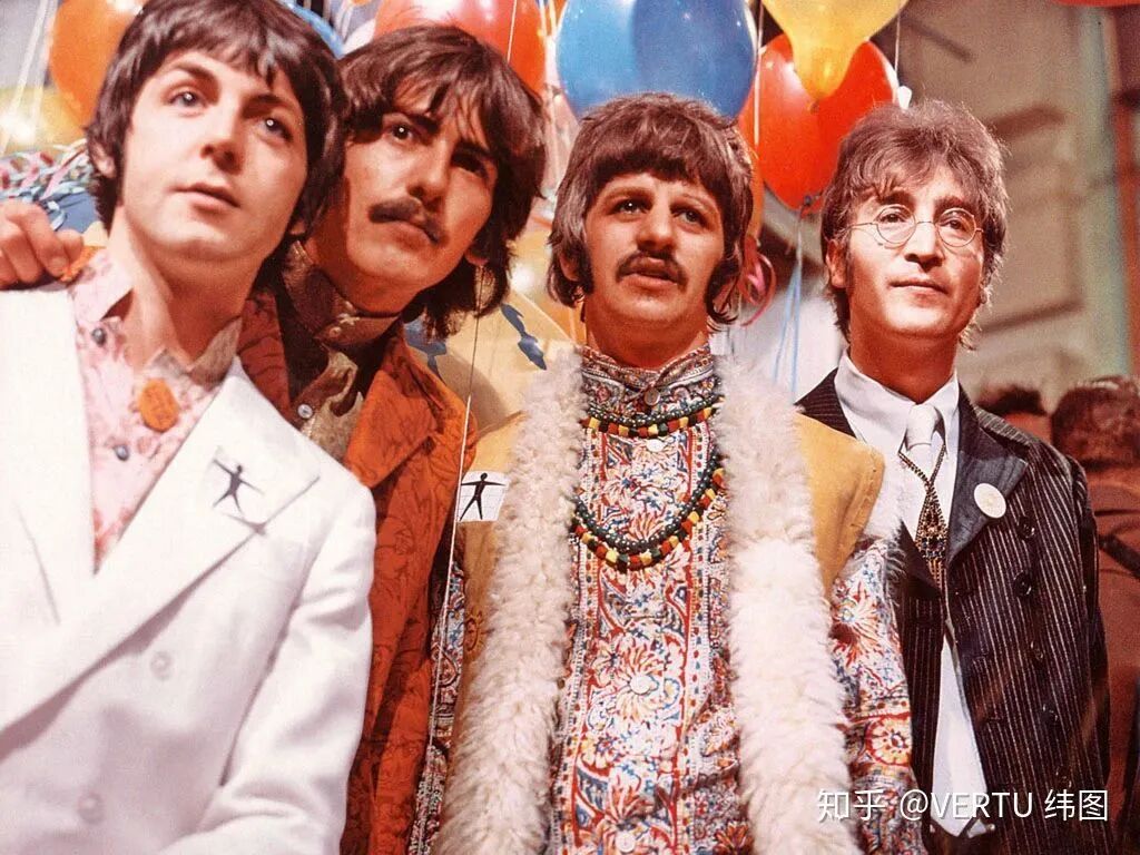 图8 甲壳虫乐队穿着印有佩斯利花纹的波西米亚风格服饰在英国巡演